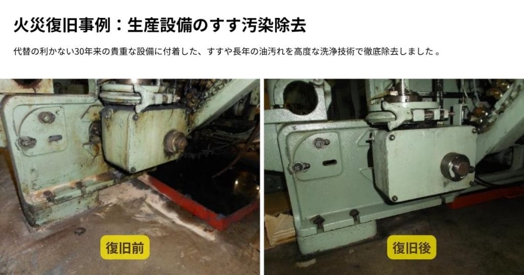 早期に専門的な汚染除去(精密洗浄)を行うことで、新品交換のコストを抑え、最短期間での生産再開(BCPの完遂)が可能になります。
